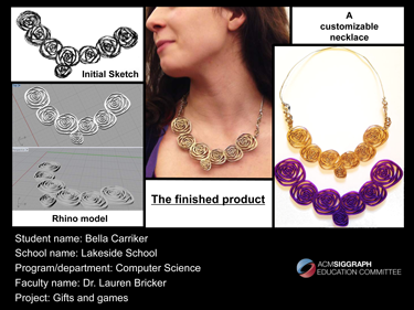 These Images and videos were displayed at the Education Committee Booth SIGGRAPH 2014 in Vancouver, BC. The curated exhibit was open to all faculty working at Secondary/High School through University levels. All submissions were required to be accompanied by the assignment, in PDF format.