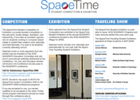 This annual report is an overview of the Education Committee's programs and activities for 2008/2009. The second half of this publication is a full color catalog of the 2009 SpaceTime Student Competition & Exhibition