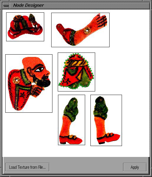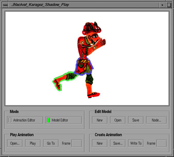 Although the techniques we used in the implementation of the animation system are well known, there is not an animation system for the Turkish Shadow Theater. The system, called Karagoz, uses hierarchical modeling to construct and animate two-dimensional articulated characters containing body parts and joints between these body parts. Different characters that have different body parts and joints have different hierarchical structures. Texture mapping is used for rendering the characters since different body parts are modeled as simple two-dimensional polygon meshes and have a predefined texture that can be mapped to these polygons as the model animates. To animate the models, the system uses keyframing based on the model parameters of the characters. These model parameters include the positions and orientations of the characters and the joint angles between different body parts of the characters. The system consists of two parts: The animation editor that is used as an authoring tool to create keyframe animations, and the model editor, that is used for creating the models used in the animations, (e.g., Hacivat and Karagoz). The most important feature of Karagoz is its ability to support characters with an arbitrary structure. This is possible since in Karagoz, hierarchical modeling is implemented in a generic way, and direct manipulation techniques are used in the user interface, which eliminate the need for character-specific control knobs.
