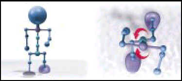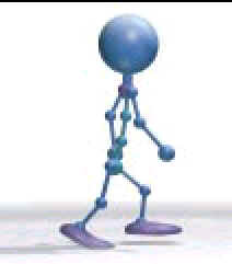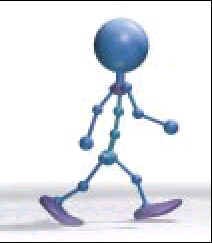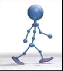 | As the character moves forward, the weight-bearing foot lifts off the ground at the heel, transmitting the force to the ball of the foot. The body starts to fall forward. The free foot swings forward like a pendulum to meet the ground and catch the bodys weight. | ![]() |
