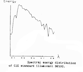 A light source has a particular energy spectrum, i.e., the energy output is a function of the wavelength, rather than being constant. Below is a plot of output energy versus wavelength for a perfect "white" light.