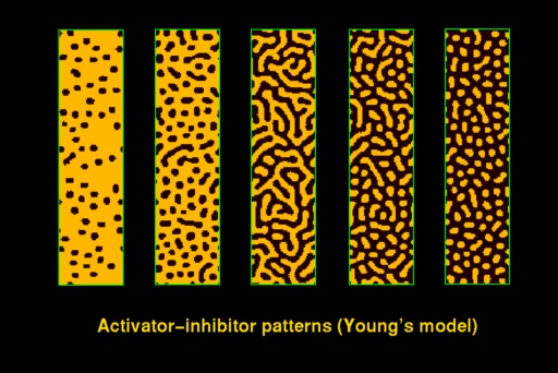 in feathers of some birds, and the middle pattern can be found in the rabbit
