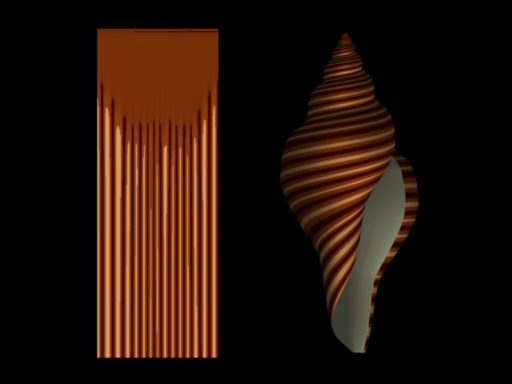 of parallel lines. In a real shell, the growing edge is curved. A stable