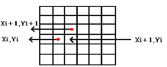 with xi+1 = xi + 1 and yi+1= yi + 1 or yi