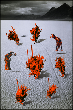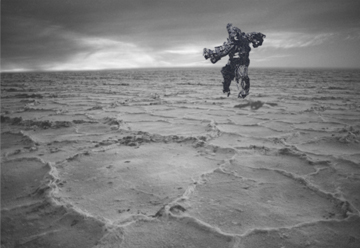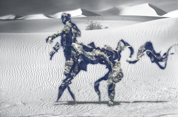The computer is more than a tool, it is a medium. Human-computer interaction softens boundaries between biology and technology, bridging human and artificial intelligence. We know that human existence has been transformed by personal computers, and by the worldwide web. The nature of humanity is challenged. I am part of this change, evolving and reflecting on possibilities. In my current artwork, cyborgs use body shells to survive and transport themselves in vast desert environments, once uninhabitable. In this pioneering world, a young girl can become a centaur, a hybrid female machine that steps from the past into the future, anywhere