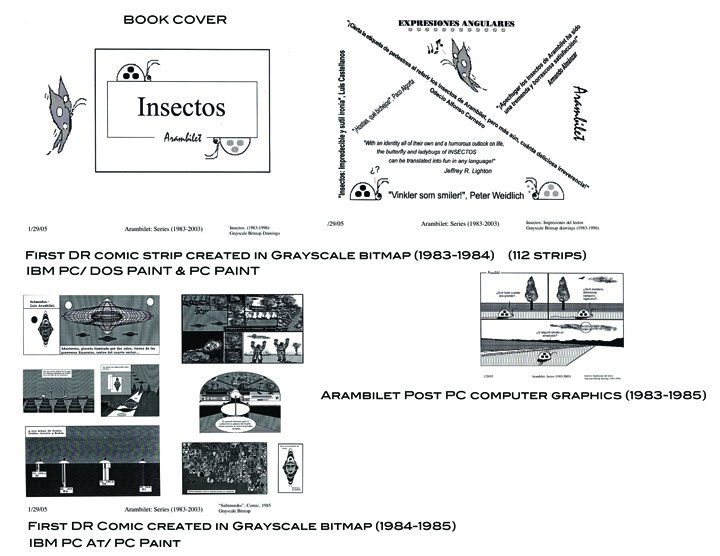 Over the years I have been perfecting digital creative venues as a painter, cartoonist, graphic artist, photographer, writer and filmmaker. My early interest in Digital Art and CG started back in 1974, when I was accepted as a programmer at a very young age (16 years old) by IBM World Trade Corporation, Dominican Republic, and saw an immense ink plotter drawing a seemingly unending architectural blueprint. Such unusual and almost magical portent, for those days, and in a remote underdeveloped Caribbean island, triggered the muse and nurture new unimagined ways to create binary and ASCII art, extremely raw, and frequently incomprehensible to must. My first short story and hybrid graphical-poems were created by punching 80 column card decks and then processed the bulk in an IBM 370-115 CPU and visualized on continuous form paper thanks to a huge IBM 3203/600 Lines Per Minute hammer-printer. Available press archives showed that at the time those were the first such initiatives, at least in Latin America. Also, I did pioneering drawings in rudimentary .BMP format (for raster graphics) in 1983-1984 with “Insects”, the first Latin American digital comic strip, and “Underworlds” (Submundos) a comic sci-fi based on my short stories, both created in an IBM PC, with Windows 1.0 and MS Paint.