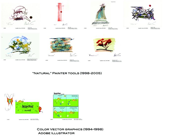 After 1984 the personal computer with a CRT screen, very basic software, and limited graphic cards, became a rudimentary tool for artists (usually lonely creative human beings focused on a specific inner process or a set of abstractions), serving both ways: A extremely powerful, dynamic, flexible visual tool, and a portal to new creative paths. I consider my work for the last 30 years, retrospectively, computer-dependant or computer-assisted, as a whole.