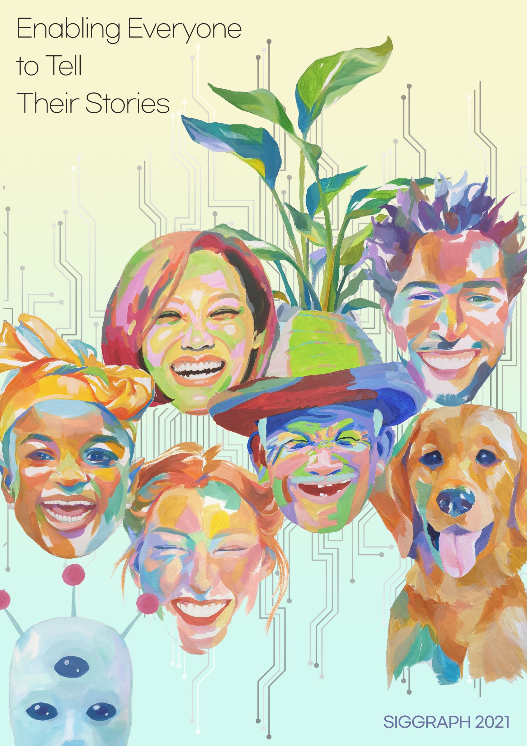 Technical Statement: I always thought it would be nice if we developed high-tech products in a way that would satisfy as many people as possible. So when I heard about the topic, I decided to paint the diverse faces of people laughing because they can freely express their feelings and stories thanks to technology. So I drew as many different people as possible with my favorite acrylic paint. I also painted my favorite retriever, all the plants in my room, and an alien from my imagination. Maybe even aliens from a faraway galaxy will want to communicate with us. After that, I took pictures of the paintings and imported them to Photoshop. Then I composed all of them and inserted the title. In the end, I wanted to create a poster using both analog and digital methods to express a given subject in my way.