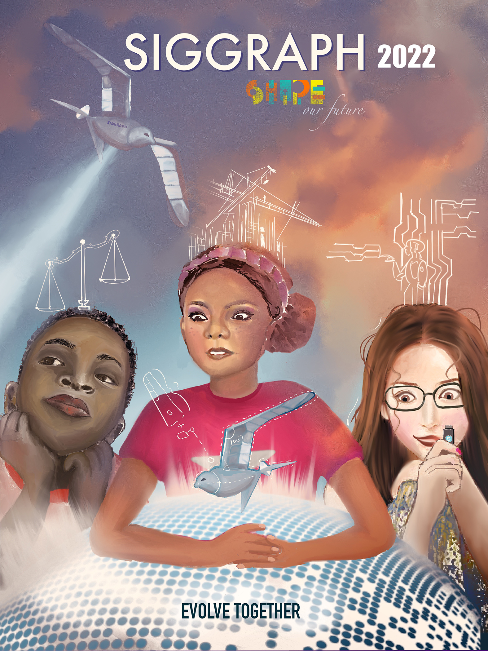 Technical Statement: In my piece, the three teens work together to evolve their future plans. Using digital platforms, I drew the three teens thinking of an invention for the future, in which they come up with an AI dove that emerges from their plan. The dove represents peace, illustrating how the collaboration of everyone’s ideas and talents brings harmony to the universe. To portray my thought process in my piece, I first sketched the outline of the three people in the art and the robotic bird. I next drew the globe and merged it into the globe. I used the blend mode to add texture to the background using the main colors used with the three people. I again used the blend mode to create the clouds and orange light coming through the clouds. I created the glow from the globe through the Luminance feature. Following, I colored in the people using the paintbrush using a variety of brush sizes and blended different shades of coloring to create a three-dimensional depth to the characters. I added expression to the characters through using different eye shapes and directional view of their eyes. I used the white outline emerging above the characters’ heads to create the main components of subjects in which the characters are focusing on in their thoughts for the future.