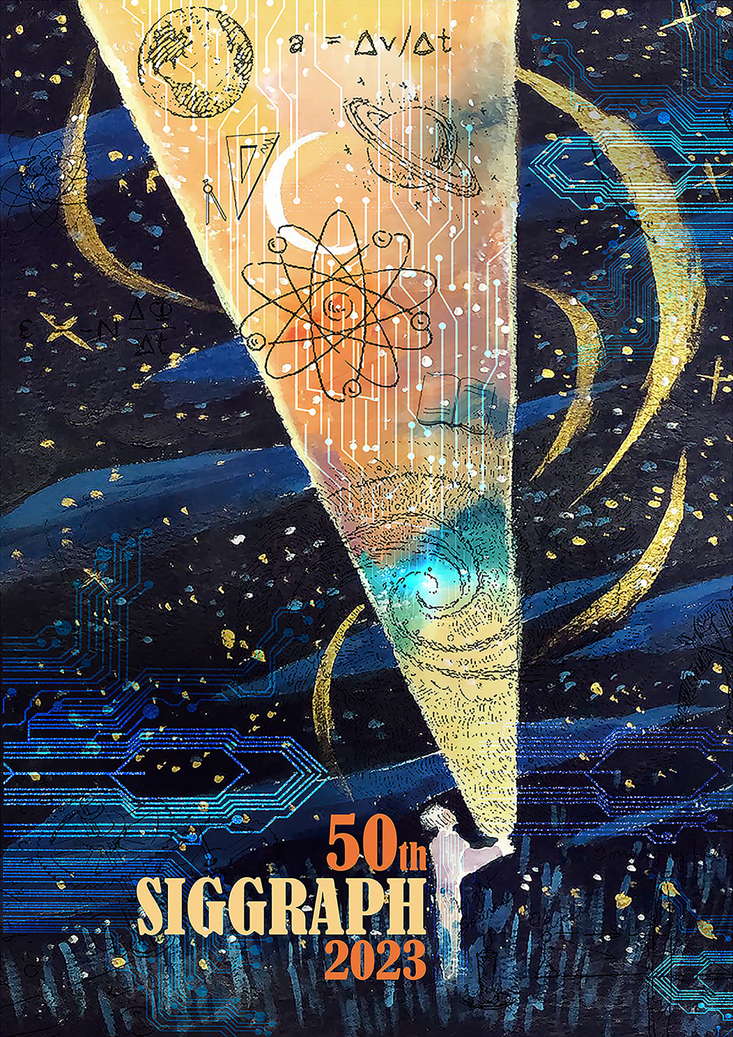 Technical Statement: This work is mainly completed by the combination of Adobe Photoshop software and hand-painted board. The background uses the hand-painted board to draw human beings’ continuous exploration of new technologies and the future in the vast universe, and rapid development through continuous research. The foreground uses Photoshop to superimpose mathematical and scientific patterns to express the creation of computer science by human beings’ constant pursuit of knowledge. Finally, the patterns of computer intelligent circuits are superimposed to show that after the emergence of technology, intelligent technology is the accelerator of the world’s rapid development. The development of the human world is changing with each passing day, and the wide application of computers will lead the world with intelligence and accelerate the future development of mankind with intelligence.