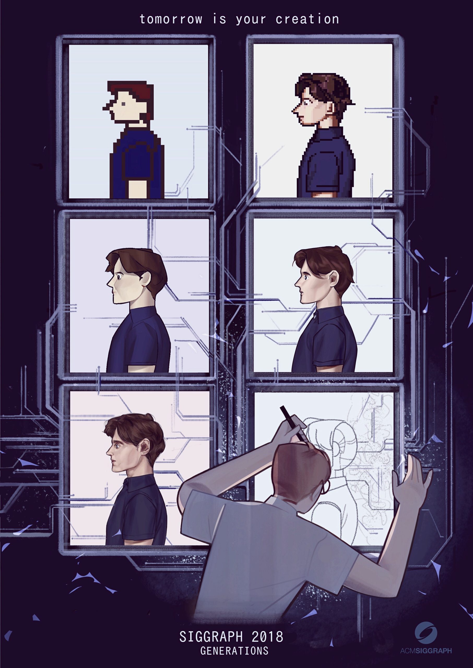 The International 2018 SpaceTime competition for students was announced matching the conference theme: “Generations“ The accepted works will be presented at the Education Booth during the SIGGRAPH 2018 conference, and can also be viewed here. Winning Entries: Accepted Entries: Chair (not judging): Jurors: